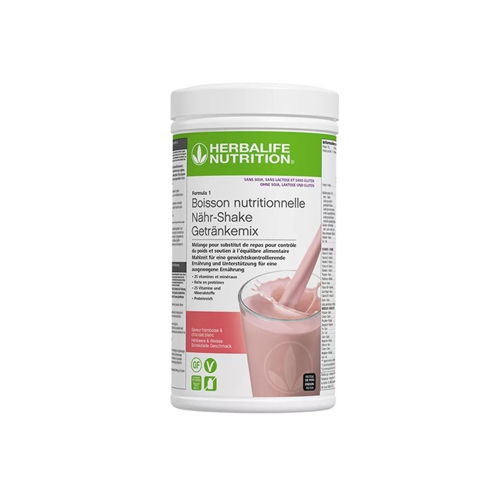 Formula 1 Himbeere, weisse Schokolade, neue Generation ohne Soja, Laktose und Gluten.