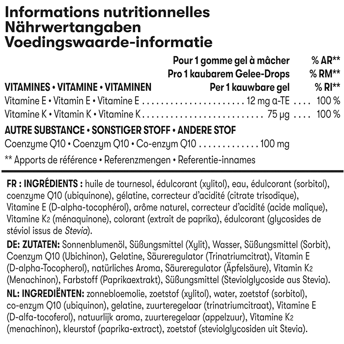 Entdecke die Kraft von CoQ10, Vitamin E und K in diesen leckeren, kirschgeschmackigen Gelee-Drops. Sie unterstützen deine Herzfunktion, schützen deine Zellen vor oxidativem Stress und tragen zu gesunden Knochen bei. Zuckerfrei und glutenfrei für ein gutes Gewissen.